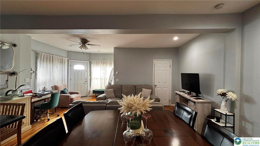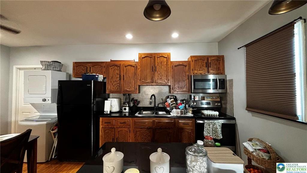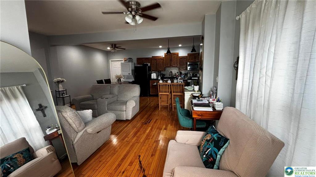 Welcome to this beautifully maintained first-floor end unit in Easton. This one-bedroom, one-bathroom apartment features an open-concept layout that creates a bright and spacious feel. Hardwood floors complemented by recessed lighting and ceiling fans. The living and dining areas flow seamlessly into the kitchen, making everyday living easy and efficient.The generously sized bedroom includes a walk-in closet, providing ample storage. The modern bathroom has a tile floor and a full-size bathtub/shower combination. For added convenience, the unit includes a stackable washer and dryer, allowing for easy in-home laundry. One side of a garage is also included in the rent, providing off-street parking and additional storage potential. The fenced backyard is shared among the units, offering outdoor space to enjoy without the hassle of maintenance. Landlord responsible for snow removal and lawn care. Landlord also covers water, sewer, and trash, while the tenant is responsible for ONLY electric. Please note: no pets and no Section 8. Don’t miss this opportunity to enjoy comfortable, easy living in a desirable Easton location!